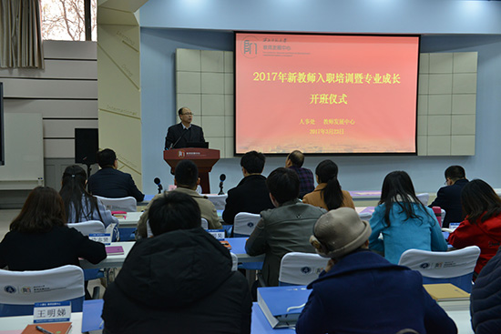 3月23日下午,学校2017年新入职教师专业成长培训班在教师发展中心开班。2017年新入职的48名教师、5名教辅和人事处、教务处、教师发展中心负责人及各学院党委书记共计80人参加了开班仪式。
