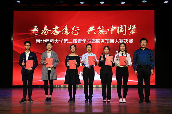 近日,我校“青春志愿行 共筑中国梦”——第二届青年志愿服务项目大赛决赛在学生发展中心举行。共青团甘肃省委青年志愿者指导中心主任韩西军、共青团兰州市委志愿者工作部部长吴永朝、甘肃“拯救民勤”公益项目发起人韩杰荣、甘肃蓝天救援队队长於若飞和有关社会爱心企业、我校团委负责人参加活动并担任主评委,20名优秀志愿服务项目负责人及指导教师担任大众评委。各学院青年志愿者代表共350余人观看了比赛。