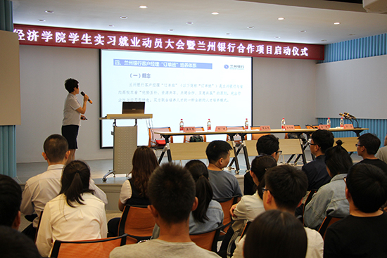 6月5日下午,经济学院学生实习就业动员会暨兰州银行合作项目启动仪式在学生发展中心举行。兰州银行人力资源部副总经理兼培训中心主任王彩翔、经济学院负责人和相关学院学生400余人参加启动仪式。