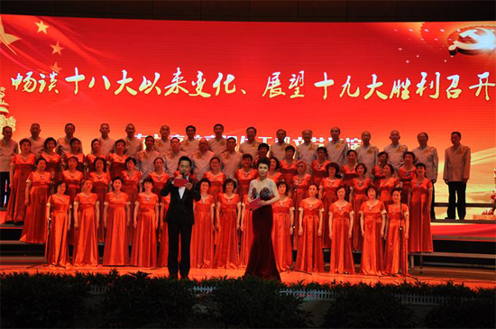 我校老年大学合唱团演唱了歌曲《龙的传人》、表演了舞蹈《洗衣歌》,老教师们个个精神抖擞,用嘹亮的歌声、优美的舞姿,表达对党的无限热爱之情。