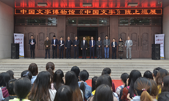 冯克坚在致辞中说,中国文字博物馆作为我国唯一一座以文字为主题的国家级博物馆,自建馆以来一直将传承和弘扬以中国文字为载体的博大精深的传统文化和华夏文明为己任。《中国文字》巡展是中国文字博物馆全力打造的面向国内外的精品巡回展览,以汉字与少数民族文字为展览的主要内容,讲述了汉字的起源、发展和研究、艺术与创意,展现了中国文字所蕴含的丰富而灿烂的中国文化。该展览自2012年项目启动以来已经举办80余场,所到之处均引起强烈反响,其中《中国文字》“进校园、进机关、进社区、进军营、进企业”系列以“开门办馆”的创新型理念,让观众能够近距离地参与展览,触摸国宝青铜,增进受众对汉字传统文化的了解,增强民族自豪感,为宣传汉字文化、提升中华优秀传统文化的吸引力和影响力作出了积极贡献。