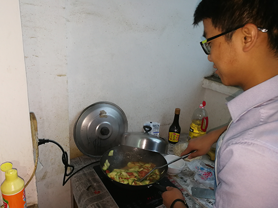 陇山学校坐落于定西市通渭县陇山乡黄家窑村,交通不便,相比在县城支教的志愿者们,这里的志愿者在生活上则多了一些负担。离开繁忙城市生活,来到偏远山村,每天步行爬山三公里去镇子上买菜,下班急忙赶着做饭,这些都成了志愿者支教当中必须要经历的事。忙碌工作和简朴生活间,西北师大的志愿者们体会到了偏远山区一线教育工作者的艰辛,更加理解了自立自强的真正含义。