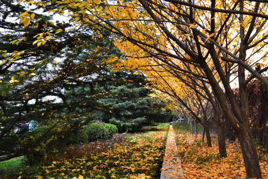 校园小路上的落叶一地,轻踩一地温暖,沿着小路,信手拾起枯叶,仿佛能听见黄河波涛汹涌的声音;漫步在校园的小道上,脚下是被秋霜洗黄的枯草,俨然像一位饰着金色丽纱的少女,在萧瑟的秋风中婆娑起舞,展现着倩姿。