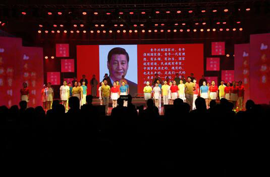 “青年兴则国家兴,青年强则国家强。青年一代有理想、有本领、有担当,国家就有前途,民族就有希望......”晚会在全体师生齐声朗诵习近平总书记对广大青年的殷切期望中落下帷幕。