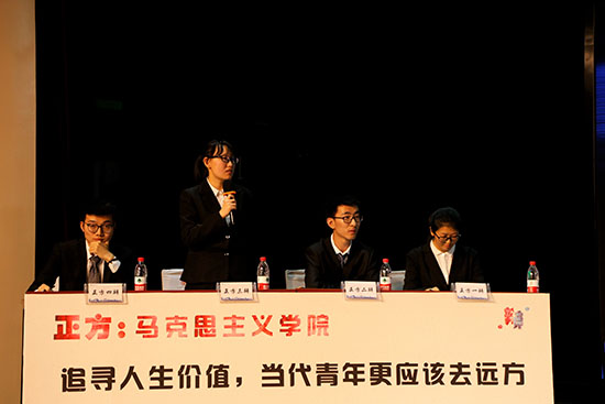 马克思主义学院本科生代表队、教育学院本科生代表队和马克思主义学院研究生代表队、商学院研究生代表队分别围绕“追求人生价值,当代青年更应该去远方还是回家乡”为辩题展开对决。经过开篇陈词、一对一攻辩、攻辩小结、自由辩论、观众提问和总结陈词六个环节的唇枪舌剑,最终,教育学院本科生代表队和马克思主义学院研究生代表队分别摘得冠军。马克思主义学院本科生代表队和商学院研究生组代表队分获亚军,地理与环境科学学院本科生代表队、计算机科学与工程学院本科生代表队和心理学院研究生代表队、旅游学院研究生代表队分获季军。心理学院、传媒学院、马克思主义学院、经济学院、计算机科学与工程学院、地理与环境科学学院、法学院获得优秀组织单位称号。马克思主义学院俞泉林等32名同学获最佳辩手。