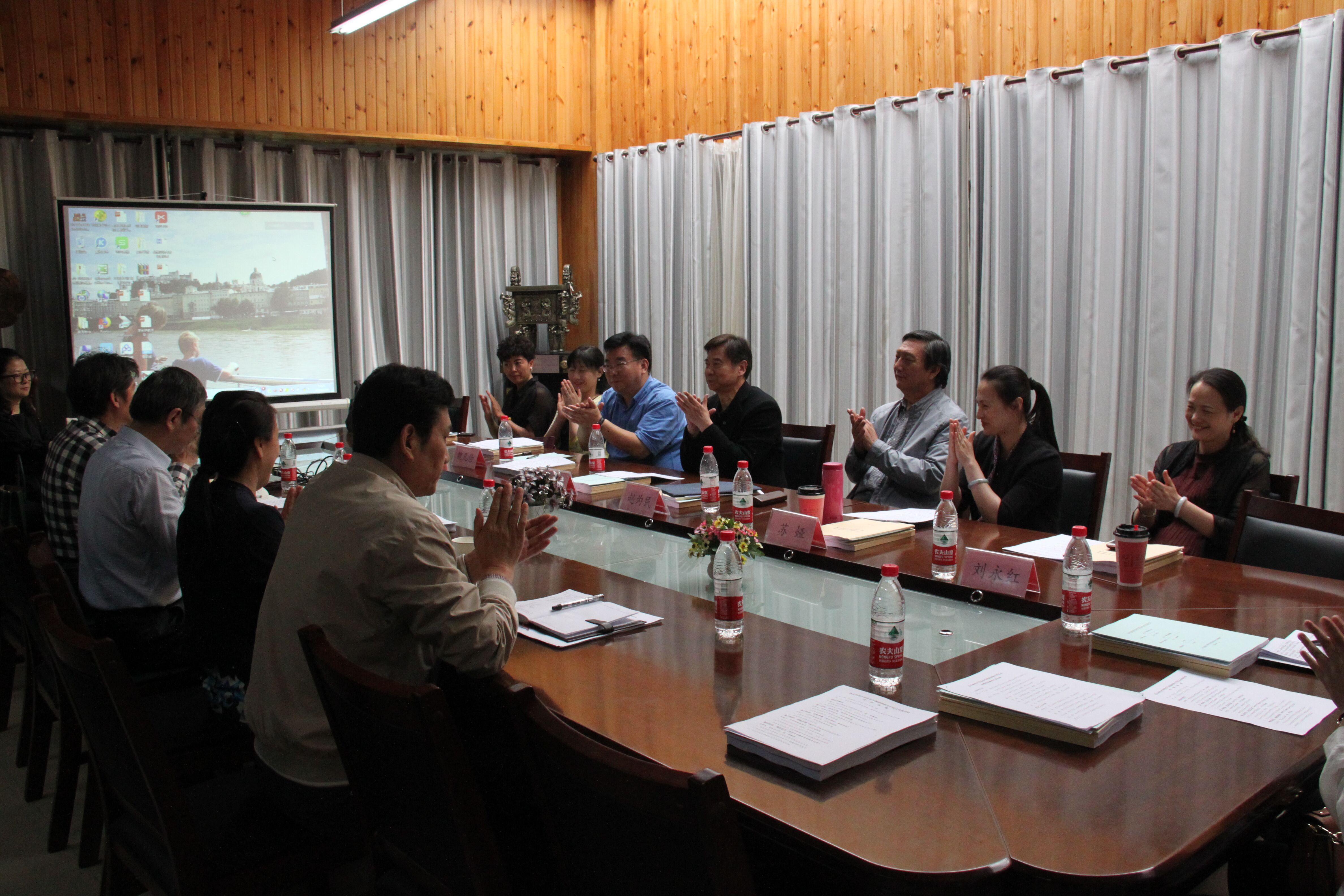 学位办负责人向专家组介绍了学校发展历程和学位点建设情况,音乐学院负责人就音乐与舞蹈学一级硕士学位授权点的历史沿革、基本情况、存在问题与改进措施等方面作了专题汇报。