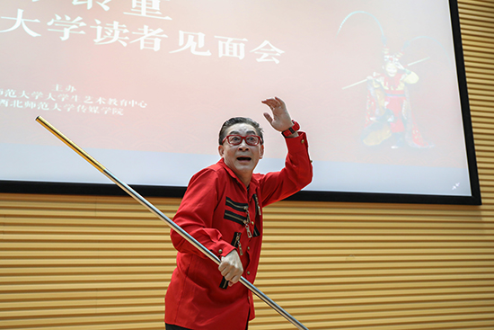讲座后,他与现场观众进行了零距离互动交流,并现场做了示范表演。“我一定会继续演下去,只要演得动,永远不会离开这个金箍棒。”章先生如是说。