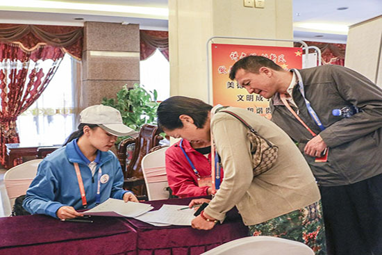 “这几天师大的志愿者们一直帮我们准备会务资料、迎来送往。他们都非常认真,和我们配合得很好,很感谢他们的热情服务。”“‘一带一路’(敦煌)农业合作国际论坛”的负责人表示,因为有了志愿者的配合,他们的工作轻松了不少。