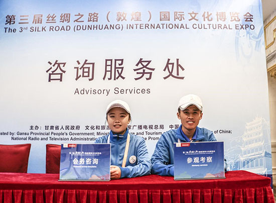 活动期间,从机场到会展中心,从宾客入住酒店到敦煌大剧院,随处都能见到西北师大志愿者们忙碌的身影。