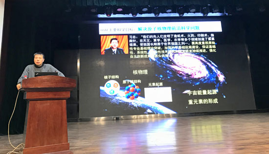 夏佳文院士在题为《重离子加速器的社会应用》授课中,向同学们详细介绍了重离子加速器在航天领域、核能领域、半导体材料、重离子辐照诱变育种及在医用治疗领域等方面的应用,鼓励同学们勤奋学习,善于思考,勇于创新,学以致用,肩负起民族复兴的时代重任。