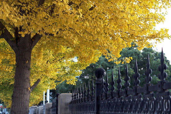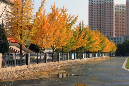 清晨的凝露洗刷了主干道两旁的绿叶,体育馆前的银杏叶以整齐的姿势在寒色里宣誓、难舍地离去。映入眼帘,蔓上心头的师大秋色,美如画。