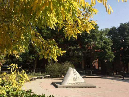 盈盈秋波,阵阵秋风。核桃树下,残损的课桌、布满尘土的讲台,犹有韵味。嗅着百年师大的古色古香,捧一本诗集,在微风里书声琅琅、洞悉理想。