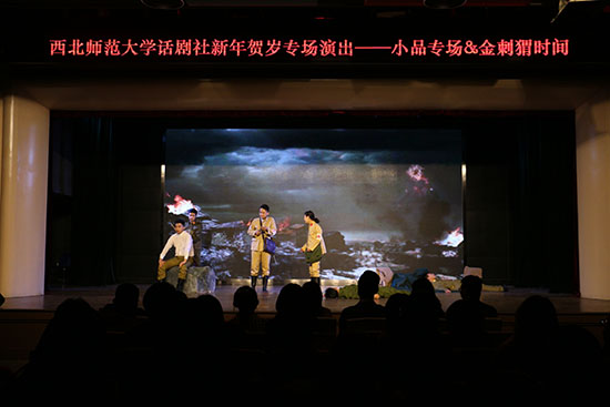 近日,西北师大大学生艺术团话剧社举办了为期两天的迎新年话剧贺岁专场展演。全校1000余名师生观看了话剧《亲爱的安德烈》《青蛇》及小品专场演出。