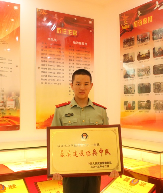 “穿上这身军装,我就是一名军人。”迷彩装着在身,全新的考验也随之而来。“军人不懂退缩,更不会退缩。”面对苦与累,王聪没有退缩过。步入军营后,他担任了中队文书一职,负责起草各类文件、报告;制定各类方案、计划;记录各类会议等等。基本上,所有和文字沾边的,都是他的工作职责。从不会做到会再到做得出色,在中队党支部的领导下,他完成了各季度的考核和年终工作总结的材料,所在中队也连续被评为支队的先进标兵中队。“两年军旅生活的历练,为我今天的学习、工作注入了强大持久的精神动力。如今,看着珍藏的已经褪色的军装,仍感到无比骄傲。”
