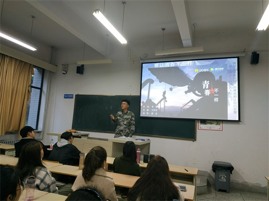 “2017年除夕夜,站在哨位上,我看着周围的高楼灯火通明,张灯结彩。那一刻,突然意识到当兵的意义,就是守卫方寸大小的哨位,保卫万家灯火的温暖。”在日韩人妻无码一区二区三区久久99_日韩精品一区二区三区中文在线_无码日韩精品一区二区免费_久久久91精品国产一区二区三区_亚洲精品久久久一区黄无码_国产91精品一区二区麻豆网站_成人国内精品久久久久影院2018级新生军事理论课上,在籍退伍大学生、传媒学院大三学生王聪给同学们分享着自己的军旅感悟。