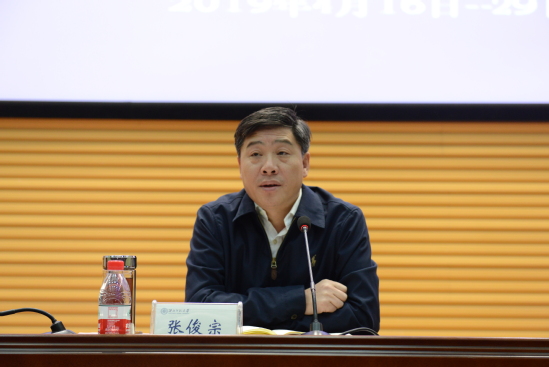 张俊宗指出,重视本科教育是高等教育的规律性问题,把本科教育放在人才培养的核心地位、教育教学的基础地位和新时代教育发展的前沿地位。要把此次本科教育工作会议精神和要求贯穿在全年工作之中,首先要抓稳抓细抓实,坚定推进“西北师大本科教育100条”落地生根,深刻领会全国本科教育工作会议精神,更新观念,打牢本科教育教学的思想基础。要坚持导向,纠偏认识,统一思想,真正做到“四个回归”和“八个首先”。要坚持“以本为本”,回归常识,围绕学生读书来办教育,引导学生求真学问、练真本领,合理为学生“减负”;要回归本分,使教师以教学为第一要务,热爱教学、倾心教学、研究教学;要回归初心,坚持正确的政治方向,用知识体系教、价值体系育、创新体系做,培养德智体美劳全面发展的社会主义建设者和接班人;要回归梦想,倾心实现教育报国、教育强国梦,实现中华民族的伟大复兴梦。要把立德树人贯穿到人才培养全过程,始终保持清醒头脑,牢牢站稳政治立场,确立“以学生为中心”的教育观念;要改进和加强思想政治教育,切实把做好思政工作作为学校的一项系统工程,充分挖掘专业课程的思政元素,推进课程思政、专业思政有机融合。要加强教育教学的过程管理,积极推进“新师范”“新工科”“卓越人才计划”建设,淘汰“水课”、努力打造一批深受学生欢迎的高质量“金课”。要立足实践、突出重点、激活动力,稳扎稳打推进“西师本科教育100条”落地生根,观念上,立足实际,容不得半点虚浮和官僚主义思想;行动上,要把本科教育教学总体要求和具体特点相结合,掌握复习提问、引入新课、讲授新课、归纳总结、课后作业五个课堂教学环节,提高教师科研、教学水平,改善教学条件,增强教学成果竞争力,加强教育成果培育,激发教师和学生积极性。
