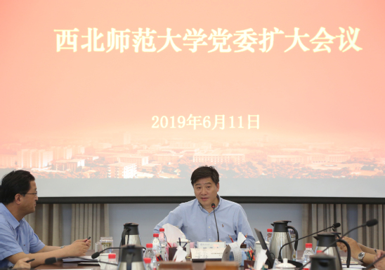 6月11日下午,西北师大召开党委扩大会议。党委书记张俊宗主持会议,校领导刘玉泉、董晨钟、李建民、邓小娟、罗剑波出席会议,学校党委委员、纪委委员,各学院、各单位党政主要负责同志参加会议。