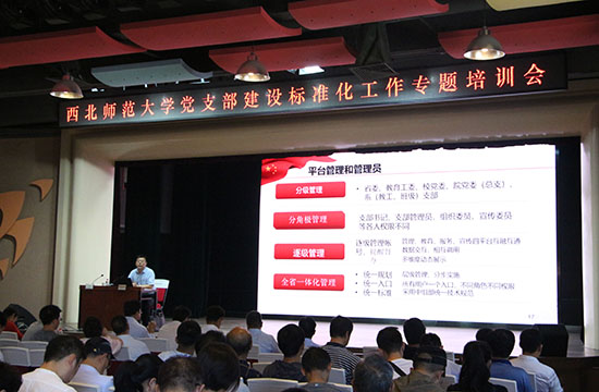 为进一步做好“甘肃党建”信息化平台推广使用与管理,创新党支部建设标准化工作途径,9月5日下午,西北师大举办第七次党支部建设标准化工作专题培训会,邀请省委组织部党员教育中心副主任景志锋作了题为《用好党建信息化平台推动基层党组织建设标准化》辅导报告。各基层党委(党总支)书记、副书记、专职组织员、各支部书记300多人参加了本次培训。
