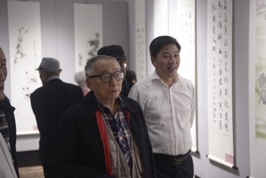 张俊宗和老同志亲切交谈,充分肯定了老同志的书画作品,询问老同志的健康和文化生活情况,鼓励老同志多开展书法绘画等高雅艺术活动,增加情趣,延年益寿。
