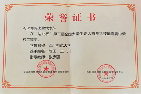 9月4日至6日,“三和数码杯”甘肃省测绘地理信息行业首届无人机测绘技能竞赛在甘肃林业职业技术学院举行。由西北师大地理与环境科学学院副教授张彦丽指导,王川、陈田同学组成的代表队经过激烈角逐,荣获竞赛学院组一等奖。
