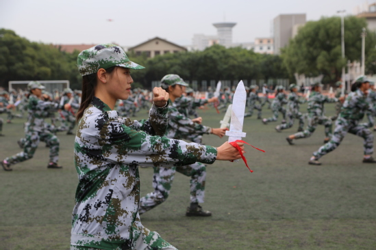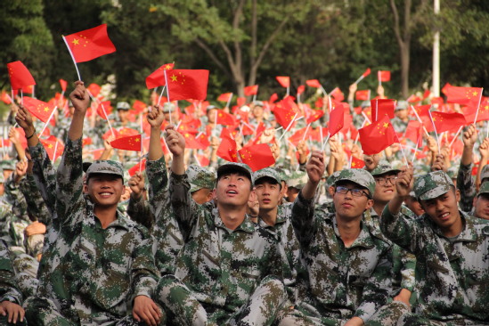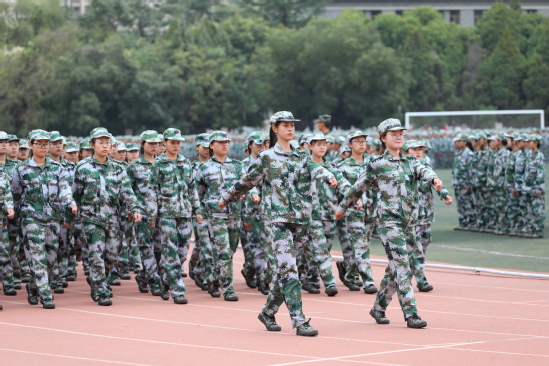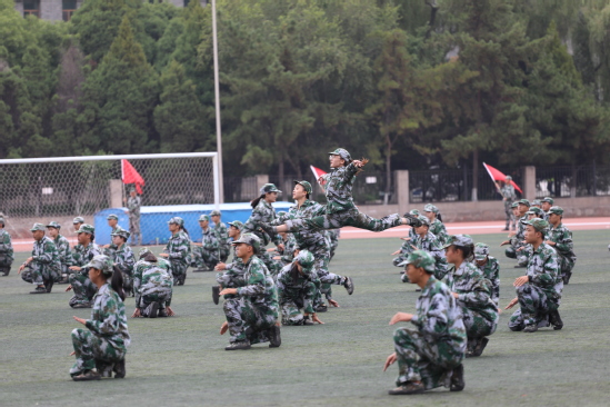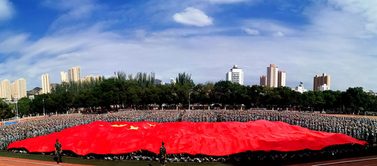 在雄伟的进行曲中,由4200余名2019级新生组成的二十七个方队在校旗的引导下,以饱满的精神、飒爽的英姿、整齐的队列、稳健的步伐依次通过主席台,并在承训教官的带领下全体参训学员汇报表演了军体拳、擒敌拳、匕首操等。参训学员不时变换队形,依次摆出了“1949—2019”“祖国万岁”“西北师大”的字样和国旗图案,齐声高呼:“伟大祖国,繁荣昌盛!国泰民安!”等祝福口号。军歌嘹亮,军姿铿锵,彰显着新一代师大学子的精神风貌,一字字、一声声展现出西北师大青年学子奋力新时代的决心和百年学府的时代担当,表达了对伟大祖国的美好祝愿!