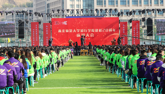 中共甘肃省委教育工委专职副书记、甘肃省教育厅党组成员张晓东,西北师大校长、知行学院理事会理事长刘仲奎,兄弟高校代表、兰州财经大学陇桥学院院长路文江,马来西亚UCSI大学副校长 Moses Ling,中国建设银行甘肃省分行党委书记、行长方华平,校友代表、教师代表、学生代表分别致辞。西北师大知行学院党委书记王喜存主持大会,西北师大知行学院院长孙建安作建校20周年主旨报告。