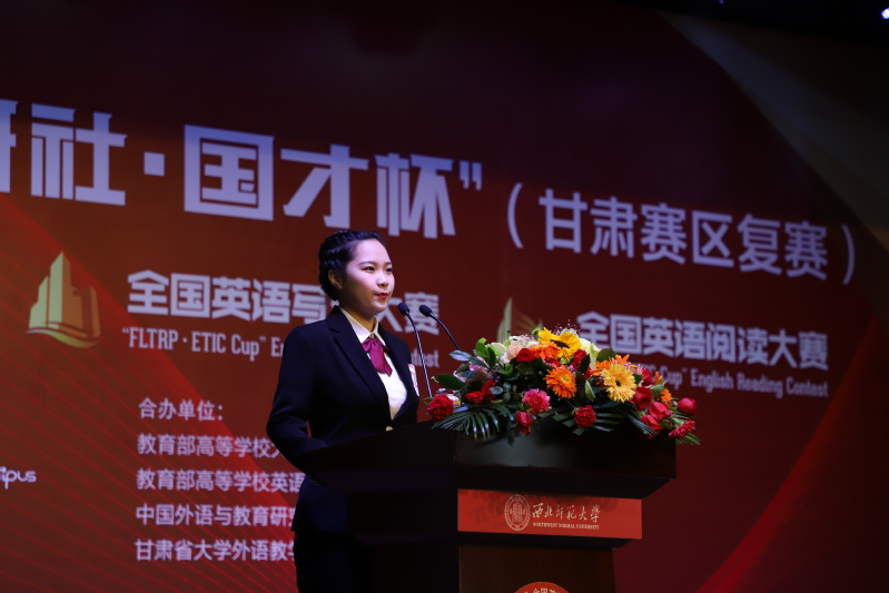 来自甘肃省内20余所高校的111名选手在演讲、写作、阅读三个分赛场进行比拼。经过一天的激烈角逐,西北师大王露洁获演讲比赛特等奖、刘馨获演讲比赛二等奖,董子畅获写作比赛一等奖、牛娟玲获写作比赛二等奖,许瑞先获阅读比赛一等奖、姜茸茸获阅读比赛二等奖;王露洁将代表甘肃赛区参加全国总决赛;外国语学院教师王国礼、代莉、杨保林、赵辉、杨昊昕、吕文澎获指导教师奖;外国语学院获优秀组织奖。
