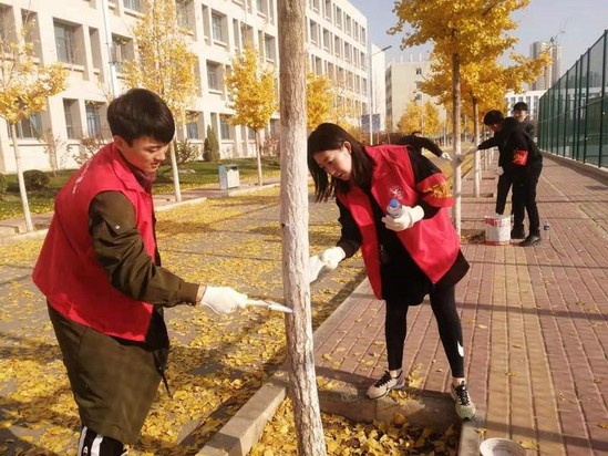 活动现场,大家一齐动手,为新校区树木涂抹石灰防虫防蛀,清理道路两侧落叶和校园内的各类垃圾,用切实行动“活化”育人载体,改善校园环境。
