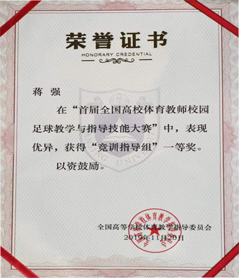 西北师大蒋强获“首届全国高校体育教师校园足球教学与指导技能大赛”一等奖