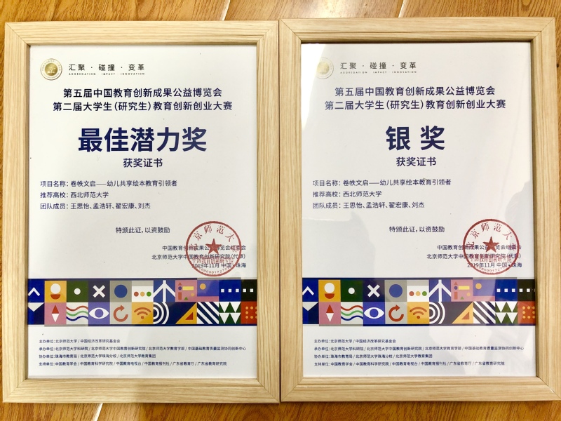 1120日至23日,第五届中国教育创新成果公益博览会暨第二届大学生(研究生)教育创新创业大赛在珠海举行。本次比赛共有来自全国近70所院校的80余支团队进入复赛,56支创新创业团队进入终审答辩。西北师大孵化的甘肃卷帙文启教育科技有限公司的核心项目“悦读鸭”幼儿陪伴阅读项目摘得全国银奖,同时获最佳潜力奖。