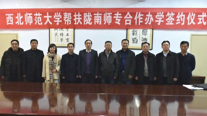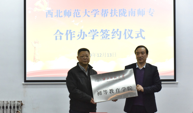田澍讲话指出,《中共中央国务院关于全面深化新时代教师队伍建设改革的意见》的出台、全国教育大会、全国高校本科教育工作会议的召开,标志着教师教育工作迎来了新的发展机遇。在此大背景下,贵我两校合作办学,能充分发挥西北师大学前教育学科和师资优势,结合陇南师专明晰的办学定位和丰富的初等教育办学经验,共同成立建设初等教育学院,打造省内初等教育人才培养的教育高地,为民族地区、农村地区输送更多优秀初等教育人才,助力西部乡村振兴计划,为加快建设幸福美好新甘肃、不断开创富民兴陇新局面做出贡献。