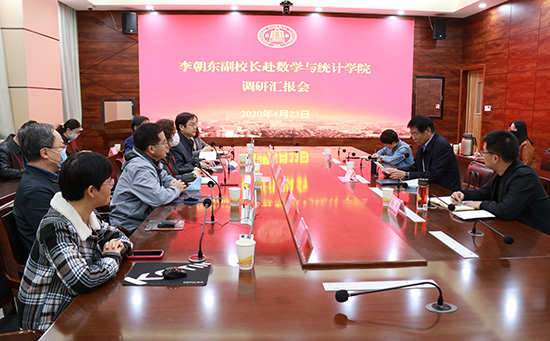 4月23日,西北师大副校长李朝东赴数学与统计学院,就学科建设、科学研究等工作开展调研。科学研究院负责人,数学与统计学院领导班子成员,各学科方向带头人参加现场汇报会,学院相关教职工参加在线视频会议。