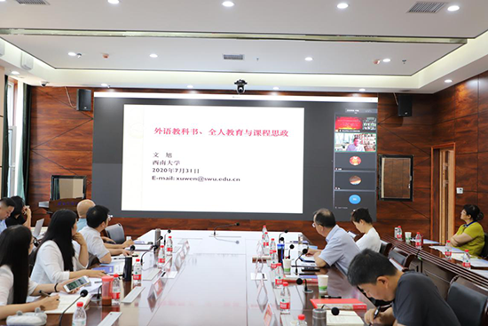 研讨会上,教育部高等学校英语教学指导委员会秘书长、湖南师范大学外国语学院院长曾艳钰教授,北京师范大学外国语学院程晓堂教授,西南大学外国语学院院长文旭教授,东北师范大学外国语学院院长林正军教授,华中师范大学外国语学院院长罗良功教授,华东师范大学外国语学院副院长杨延宁教授等15名国内知名外语专家和学科负责人作了精彩的学术报告,大家就外语专业教材建设存在的问题与对策、课程思政在外语专业教材建设中的落实、外语专业教材建设的学科化、全球治理人才培养对外语专业教材建设提出的新要求、外语教材建设中的家国情怀培养等问题进行了深入的探讨;西北师大曹进教授、俞婷教授在研讨会上作主旨发言,探讨了外语专业教学与教材建设的一体融合问题与教材编写中的选材问题。