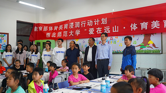 8月4日,西北师大校长刘仲奎与校团委相关人员一行,专程赴会宁县大沟镇中心小学慰问了学校“爱在远山·体育美育浸润行动计划”社会实践团师生,白银市教育局副局长李文强、会宁县委书记王科健、县人大常委会主任李进军及县教育局局长王池柳等参加活动。
