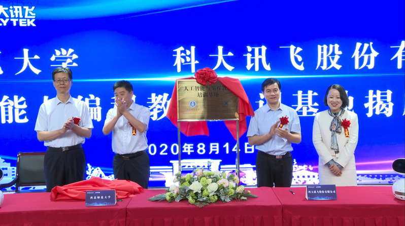仪式上,刘仲奎与任萍萍代表双方签署战略合作协议。张俊宗、吴晓如、刘仲奎、任萍萍共同为“人工智能与编程教育培训基地”揭牌。根据协议,双方将在产教融合深层合作、高层次人才联合培养、高水平科学研究、人工智能教育应用、人工智能创新教育培养、智能化学习资源研发、民族地区国家通用语学习等方面开展深入合作,实现成果转化和资源共享。