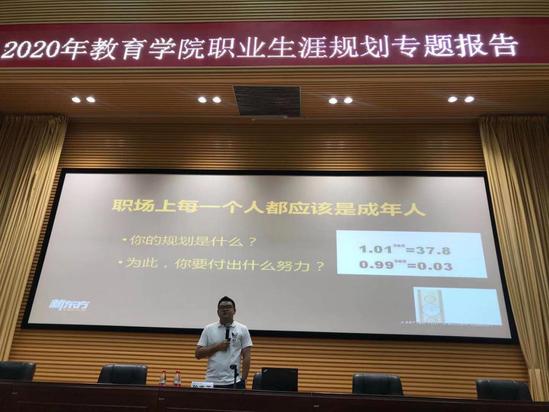 同时,教育学院邀请新东方科技集团兰州学校来校为2021届毕业生举办专题报告,新东方兰州学校孙吉芯校长就毕业生求职准备、职业生涯规划、民办教育发展现状向毕业生作了详细介绍,鼓励毕业生做好求职准备、树立信心、积极参与求职竞争。