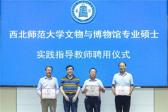 期间,学校聘任酒泉市文化馆馆长王峰朝、酒泉市博物馆特聘研究员吴浩军、酒泉市敦煌市博物馆馆长石明秀为历史文化学院文物与博物馆专业硕士实践指导教师,田澍为新聘任导师颁发聘书。