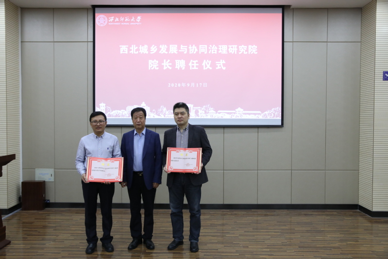 大会上,科学研究院负责人宣读了学校成立西北城乡发展与协同治理研究院暨院长聘任文件,张生勇和叶超共同为研究院成立揭牌,张生勇为研究院院长叶超、常务副院长马利邦颁发聘书。