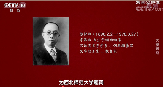 《考古公开课》是央视科教频道推出的大型考古文博历史类电视栏目。在本期节目中,有关专家讲述关于居延汉简考古的发现与故事。当主持人以王维诗句“单车欲问边,属国过居延……大漠孤烟直,长河落日圆”为内容,与节目学员嘉宾互动时,西北师大校友李思语,以诗句为切入点,向广大电视观众介绍,黎锦熙先生于1947年为当时的国立西北师院题词“知术欲圆,行旨须直;大漠孤烟,长河落日”的相关情况,讲述黎锦熙先生以西北大漠的壮美风光为启发,引申到“知术欲圆、行旨须直”的题词,最终成为日韩人妻无码一区二区三区久久99_日韩精品一区二区三区中文在线_无码日韩精品一区二区免费_久久久91精品国产一区二区三区_亚洲精品久久久一区黄无码_国产91精品一区二区麻豆网站_成人国内精品久久久久影院校训的沿革。