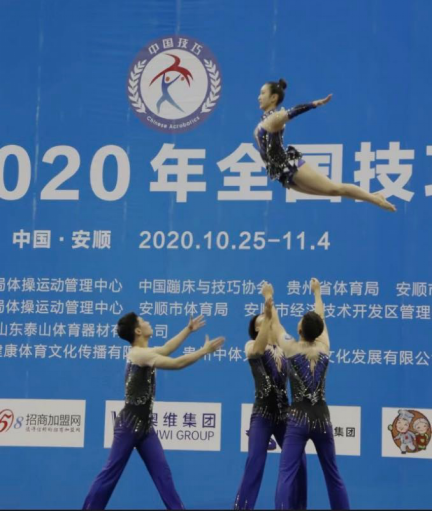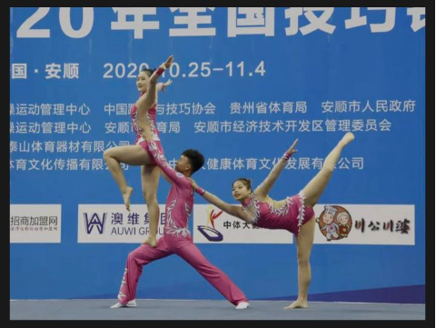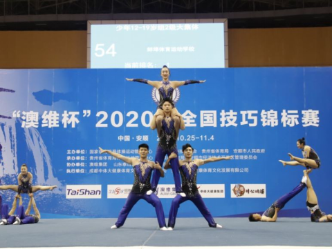 近日,“澳维杯”2020 年全国技巧锦标赛在贵州安顺举行,来自全国14个省市的71支代表队参赛。