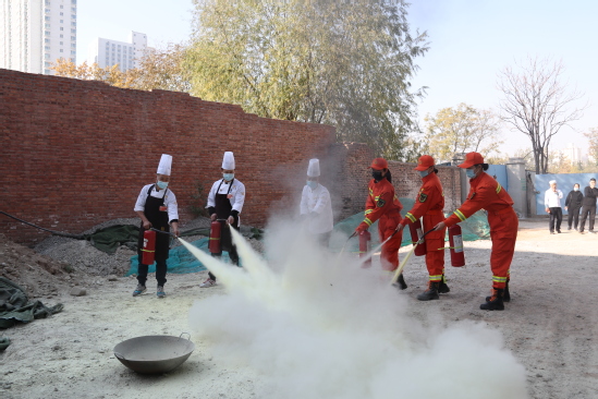 活动中,学校武装保卫处专业人员现场讲解了灭火器、灭火毯的正确使用方法,同时通过示范让到场志愿者及工作人员掌握灭火技巧。消防演练活动的开展,让同学们和餐厅工作人员对消防知识有了更深刻的认识,增强了大家的安全意识,进一步提高了自我保护和自救能力