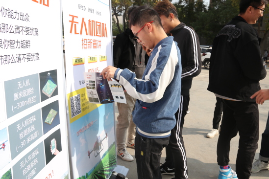 在推广日活动的户外展示环节,同学们通过试飞无人飞行器和试驾无人车体验无人机技术。在报告环节,一方水土电子科技有限公司经理甘楠为同学们讲解了无人机的发展进程、无人机在全球各个领域的应用前景、无人机在智慧农业领域的发展趋势,使同学们系统科学地了解了无人机技术。