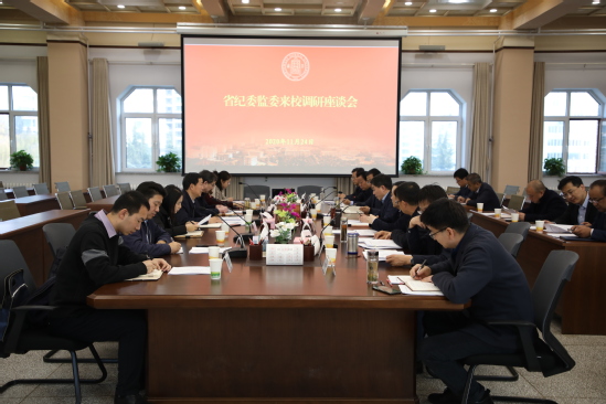 11月24日上午,省监委委员高连城,兰州大学党委副书记、纪委书记蔺海波一行7人组成的省纪委监委调研组来西北师大,就贯彻落实刘昌林同志关于推进政治监督具体化、常态化、制度化工作要求,省管高校建立日常监督工作任务清单,提升日常监督工作规范化水平等内容开展调研座谈。西北师大党委书记张俊宗主持座谈会,校领导刘玉泉、田澍、董晨钟、马庆、张生勇、李朝东、李建民、韩高年出席座谈会。学校相关部门、学院负责人参加座谈会。