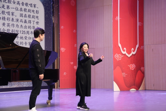 仪式后,黄英、吴虹霓、王传越、王云鹏的精彩表演为师生们带来一场歌唱艺术的盛宴。吴虹霓演唱了著名歌剧《卡门》选段《哈巴涅拉》,她再现了优秀的花腔技巧及对声音的表现力;王云鹏演唱了《普罗旺斯的陆地海洋》,干净通透的声音与极富感染力的舞台表演赢得阵阵掌声;黄英和王传越联袂带来了著名经典歌剧《茶花女》选段《饮酒歌》,轻快的舞曲节奏与高超的舞台表演技巧融为一体,男高音明亮的色彩与女高音六度大跳的旋律动机贯穿全曲、充满活力。