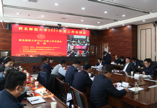 3月1日下午,西北师大召开2021年度学校工作安排会。党委书记张俊宗出席并讲话,党委副书记刘玉泉主持会议,副校长田澍安排部署学校2021年度工作,副校长、寒假总值班李建民通报2021年寒假工作。校领导董晨钟、马庆、张生勇、李朝东、邓小娟出席会议。机关各部门负责人在主会场参加会议,各学院领导班子成员、系所中心主任、教师代表,各单位、机关各部门有关人员通过视频方式在分会场参加。