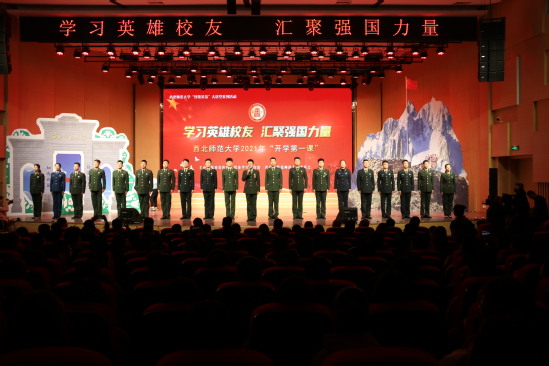 “从抗日烽火中于兰州建校起,133名学生响应‘一寸山河一寸血,十万青年十万军’的救国号召,投笔从戎;到雄赳赳、气昂昂跨过鸭绿江抗美援朝、保家卫国的豪情壮志。从对越自卫反击战中不怕牺牲、矢志报国的英雄气概,再到时至今日一批又一批青年学子应征入伍,书写新时代的青春篇章……西北师大这所历经近120年风雨的百年老校,始终与这个国家同呼吸、共命运。这种特殊的历史造就了这所学校特有的品格和精神。”西北师大党委书记张俊宗现场分享了百年师大的爱国情与报国志。他表示,为有牺牲多壮志,敢叫日月换新天。对于西北师大来讲,陈红军烈士身上的这种英雄精神,与母校“爱国进步、诚信质朴、艰苦奋斗、自强不息”的办学精神和爱国底蕴一脉相承。今天,我们以这样一种方式上“开学第一课”,就是希望能把这种崇尚崇高的精神充实起来,使之成为我们特有的宝贵资源。让每一个从西北师大走出的学生成为我们国家、我们党最忠诚、最可靠的建设者和接班人。