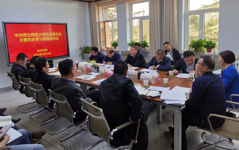 3月24日下午,西北师大机关党委召开党史学习教育启动安排会议,机关所属21位党支部书记参加会议。