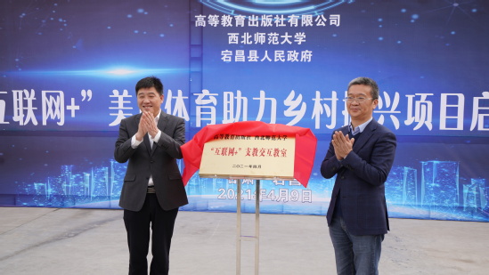 4月9日,“互联网+”美育体育助力乡村振兴项目启动仪式在宕昌举行。高等教育出版社总编辑陈晓光、副总编辑张泽,西北师大党委书记张俊宗,副校长邓小娟、韩高年,教育部发展规划司扶贫处韦海,宕昌县县长李建功等出席仪式。西北师大相关学院、部门负责人参加启动仪式,西北师大副校长王顶明主持仪式。