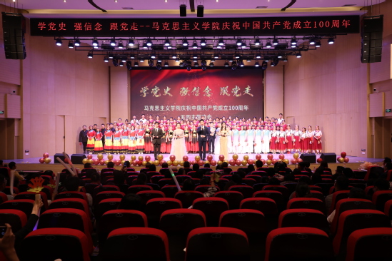 为引领青年师生进一步学党史、悟思想、办实事、开新局,围绕学史明理、学史增信、学史崇德、学史力行,营造浓厚的学习氛围。510日晚,西北师大马克思主义学院主办的“学党史、强信念、跟党走”——庆祝中国共产党成立100周年五四主题晚会在音乐厅举行。党委副书记刘玉泉、副校长邓小娟出席,部分机关部门负责人、马克思主义学院领导班子成员、师生代表约300人现场观看晚会。