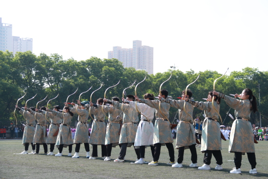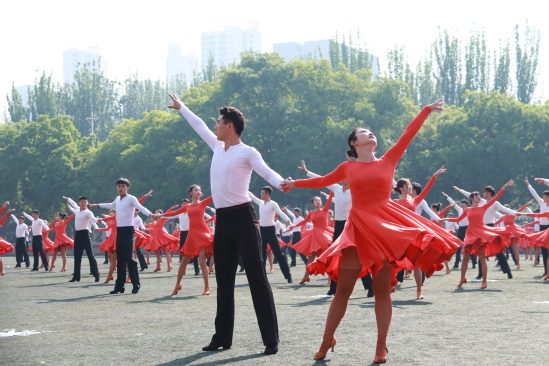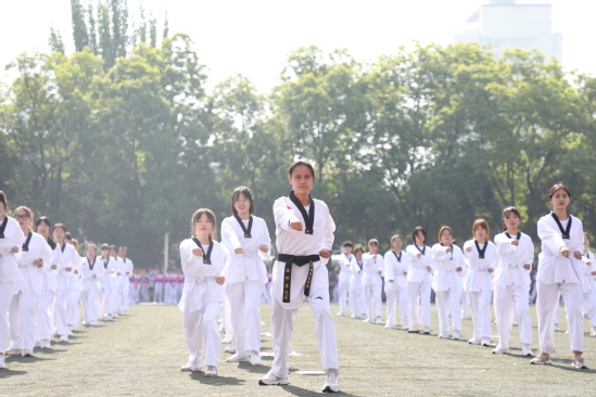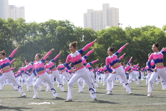 在“五育并举”体育美育改革推进活动展示环节,400余名学生演绎的腰鼓,将现场气氛推向高潮;200余名各学院学生联袂演出的体育舞蹈,展现了学校在体育创新改革和全力推进“五育并举”方面的新突破;来自各学院的700余名学生共同演绎的“千字文-武术操”将体育运动与传统文化完美融合;跆拳道、射艺表演展现了学校体育教育的新成果;全校各学院学生400人演出的健美操,彰显了新时代西师学子的青春与活力。